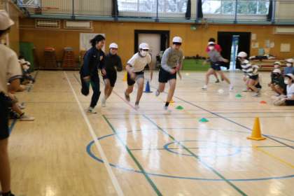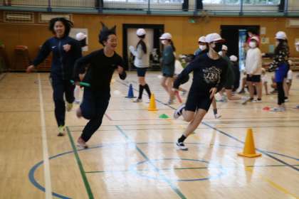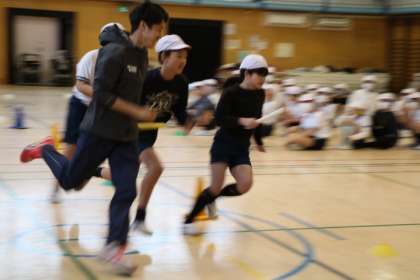 まとめランの様子です。6年生相手、しかも1チーム10人なので、駅伝部の方もより真剣です。女子駅伝部は3人で走ってくださいました。
