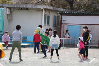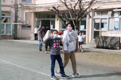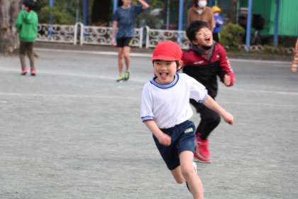 校庭遊びの写真、今日はAグループが校庭遊びでした。なかよし班で遊べるのもあとわずかです。