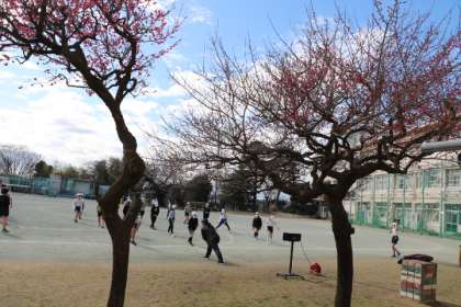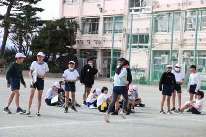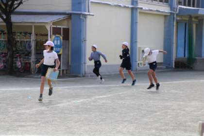 ペアになって記録を取る子の応援勢いのあまり、一緒に走りだす子もいます。