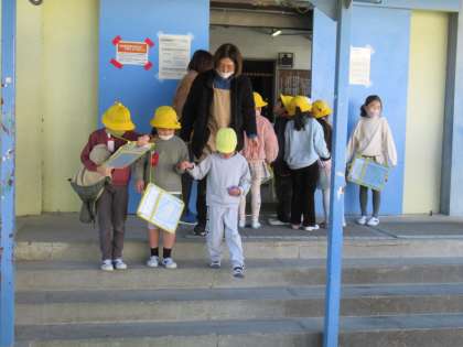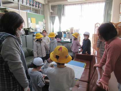 グループになり、一緒に給食室や保健室、校長室や職員室、図書室、体育館など、