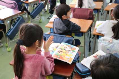 1年生の音楽の授業の様子です。今日は、行進曲の鑑賞をしていました。スピーカーから流れてくる行進曲を聞きながら自然と体動く子もいました。みんなそれぞれ行進曲を聞いた感想をプリントに書いていました。