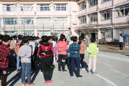全校朝会では、明日の持久走大会で全力で真剣に自分の記録更新を目指してほしいと話しました。私も中学校・高校のとき毎年行われていた持久走大会が大の苦手でした。しかし、せっかく走るのなら少しでもタイムを縮めたいと、練習した話をしました。走れば走るほど苦しくなくなる、タイムが良くなる、それがとても楽しかったことを覚えています。