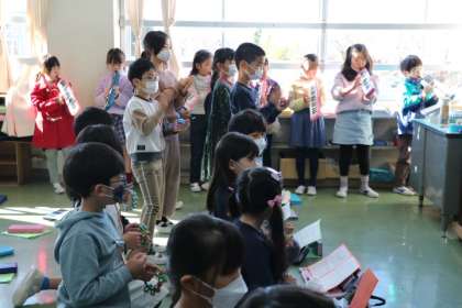 2年生の様子です。こちらは学年で、6年生を送る会の出し物の練習を頑張っています。