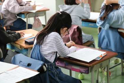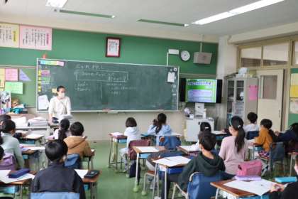 2年生の国語の授業の様子です。「広がれわたし」というテーマで自分の成長についてインタビューしたことをまとめていました。インタビューカードの内容を丁寧に清書できていました。