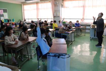 朝会の後、学級で話し合ったり、さっそく行動したりするなど、私の話からさらに考える時間をもつ学級がたくさんありました。