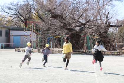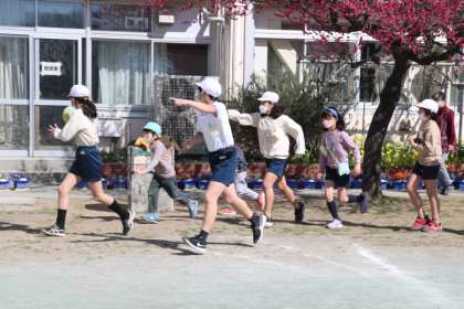 小学校に来るまでドキドキ緊張顔の幼稚園の子たちも、5年生との遊びが始まると、はじける笑顔です。