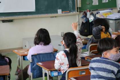 1年生の国語の授業の様子です。「いいこといっぱい 1年生」の単元の学習で1年間の様子をみんなで振り返っていました。あっという間の1年間、いろいろなことがあったことを思い出して振り返っていました。