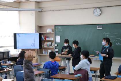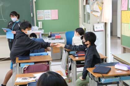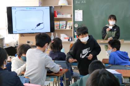 6年生が卒業アルバムに載せるための座右の銘を書く準備をしていました。それぞれ自分の好きな模様のついたカードに書くようで、係の人が大型テレビにカードを提示してどれがいいか選んでいました。いよいよ3月です。卒業まであと少しですね。