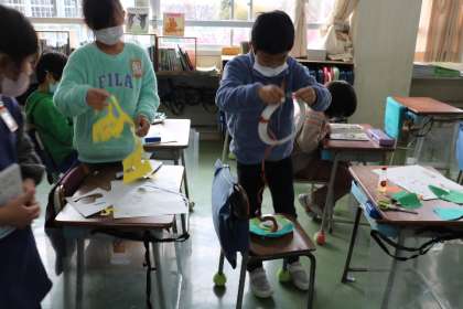 子どもたちの発想にはいつもながら驚かされます。同じ素材なのにこんなにも違う作品が!!どれも楽しい作品ばかりです。