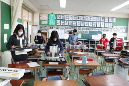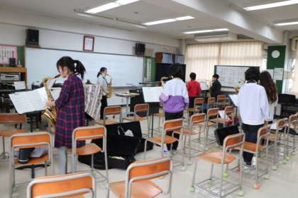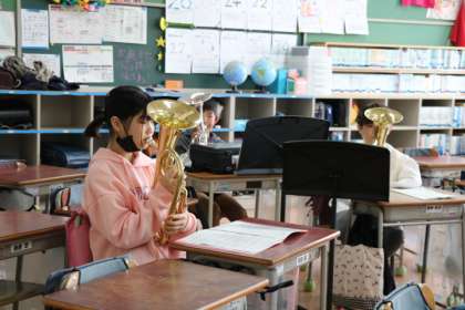 毎朝の5年生鼓笛隊朝練習も、校長室まで聞こえてくる音程が日増しにしっかり安定してきています。