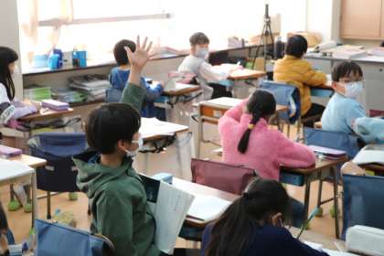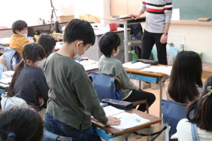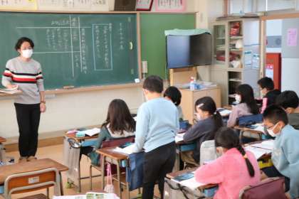 3年生の国語の授業の様子です。「もちもちの木」の単元を学習していました。じさまと豆太の気持ちを文中の描写をもとに考えていました。たくさんの意見が出ていて、物語をみんなで読み深めることができていました。