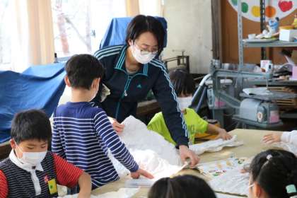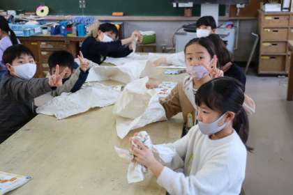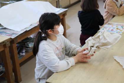 3年生の図工の授業の様子です。「紙をもんで」という作品を作っていました。やさしくもんだ紙の感触を楽しみながら作っていました。どんな作品になるか楽しみですね。