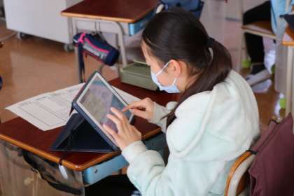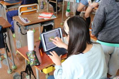 5年生の国語の授業の様子です。「提案しよう 砧を支える君へ」というテーマでのスピーチの準備を行っていました。根拠となる資料を探して、説得力のある資料になるように工夫して取り組んでいました。