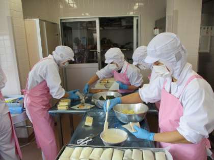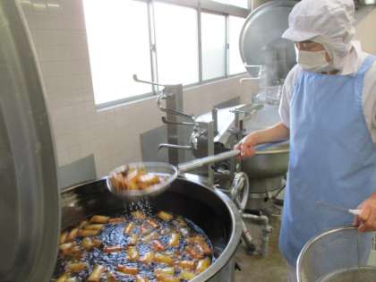 魚のチーズ包み揚げは新メニューです。下味をつけたメカジキとのり、チーズを春巻きの皮で包んで油で揚げて作りました。