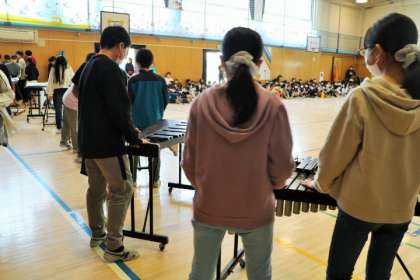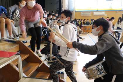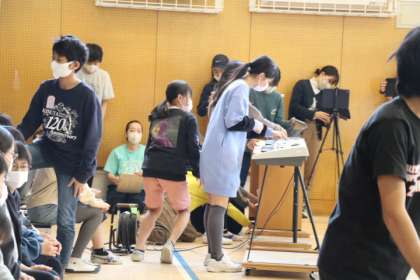 準備から全部子どもたちだけで行います。大変なところはすぐに助け合いながら。そんな姿も1〜5年生が見ています。