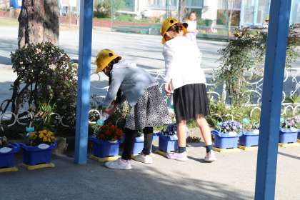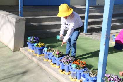 昨日渡り廊下に植木鉢を動かした1年生。毎日こまめに水やりをする子もいれば、すっかり忘れている子もいます。球根の目もだいぶ長く伸びてきました。