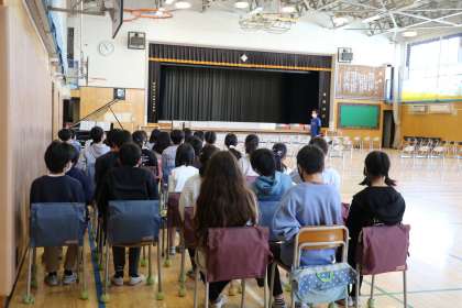 5年生合同音楽の様子です。昨日の送る会が終わり、次は卒業式に向けて練習です。