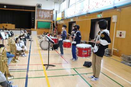 打楽器もまだまだ練習が必要ですが、みんなで合わせると色々なことがわかります。こんな風に組み合わさって曲に仕上がっていくのだなと、納得。毎朝の練習もどんな練習をすればいいかがはっきりしてきます。