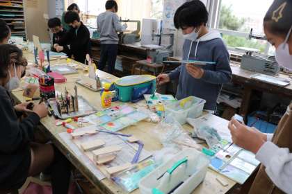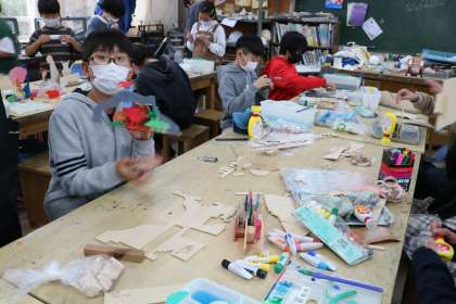 5年生図工の様子です。「ズラシックパーク」の最後の仕上げを頑張っています。うちに飾っておきたくなるような作品ばかりです。