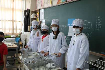 毎日メニューの意味や、栄養などについて書かれている栄養士の先生からのお手紙を、今日も当番が読み上げています。