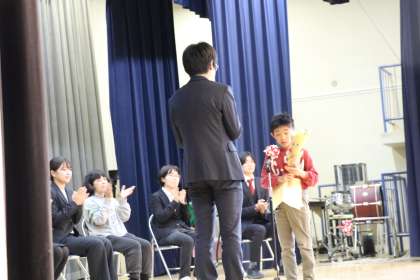 4時間目は離任式でした。発表から2日間しかなかったのに、代表の子どもたちはお別れの言葉をしっかり考え、自分の言葉で伝えました。