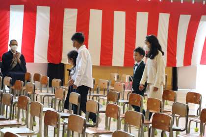 今日は令和5年度、砧の学び舎・自立の学び舎 世田谷区立砧小学校入学式が行われました。クラス毎に入場するとき、1年生の手を優しく引いてエスコートするのは、6年生です。6年生は在校生代表として入学式にも参列します。