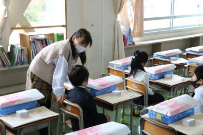 6年生のお兄さん、お姉さんが、待っている間お話を聞いてくれたり、いろいろ話かけてくれたりしたおかげで、1年生は安心して入学式に臨めたことでしょう。