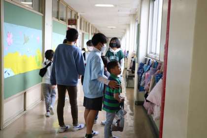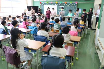 朝のしたくが終わったところで、6年生は自分の教室に戻ります。1年生も「ありがとうございました」とご挨拶です。はやく、お互いに名前をおぼえて呼び合えるようになるといいですね。