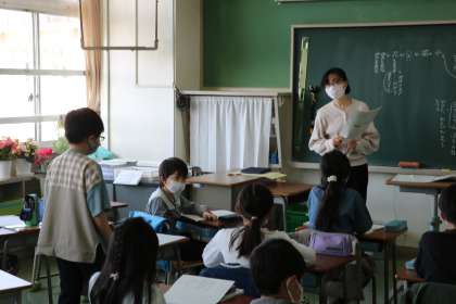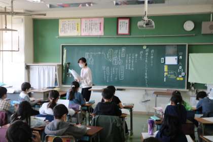 4年生の国語の授業の様子です。「春のうた」をいう詩の音読を楽しんでいました。音読してみて気づいたことや思ったことを発表もしていました。授業の最後には、4年生の担任の先生方のお気に入りの春の詩も音読していました。たくさんの春をテーマにした詩に親しむことができたようです。