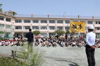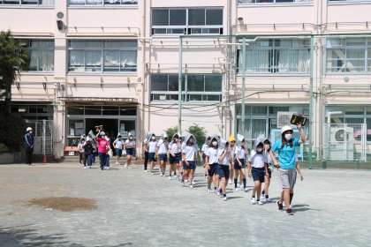今日は今年度初めての避難訓練です。新しい教室になり、避難経路をしっかり確認しました。