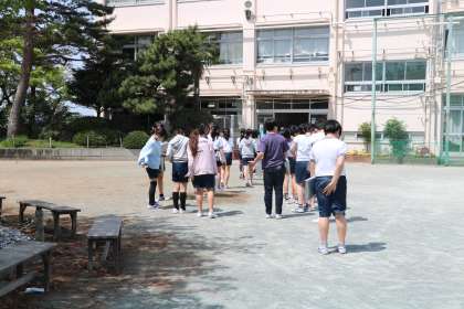 そして訓練が終わった後、教室や校庭で学級ごとにふり返りをします。