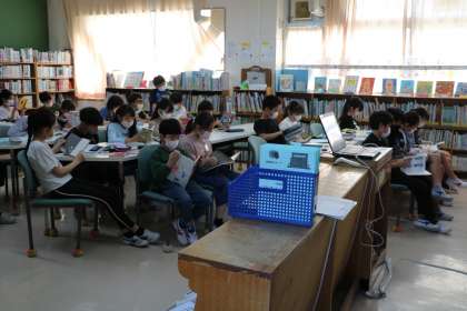 感染症対策のひとつとして本を教室にもっていって読んでいましたが、今年度から図書室でそのまま本を読むことにしました。砧小の子どもたちは、静かにするところでは本当にきちんと静かにできるので、少々スペースに限りがある図書室ですが、一言も話し声が聞こえず、本に集中しています。本を選ぶのも、ゆったり選べます。