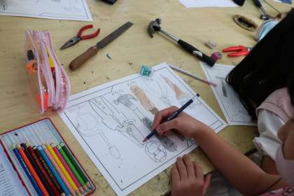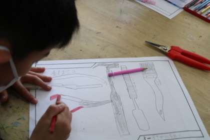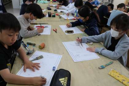 3年生図工「図工室図鑑」の様子です。図工室にある用具について知り、色鉛筆の塗り方を工夫して図鑑のように並べて描きます。3年生にとっては、初めて図工室での図工です。少しお兄さんお姉さんになった気分です。