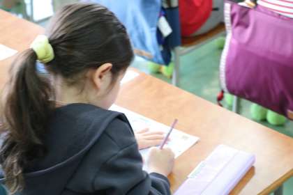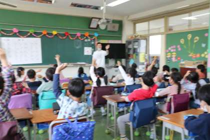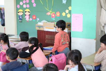 1年2組の朝学習の様子です。ひらがなの学習をしていました。今日は「ち」です。「ち」のつく言葉をたくさん見つけて元気に発表していました。先生から書き方を聞いて丁寧にプリントに練習していました。