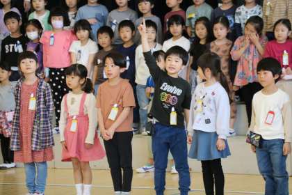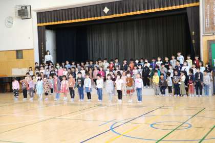 1年生が明日行われる1年生をを迎える会の出し物の練習をしていました。体育館でひな壇に並ぶところから丁寧に指導しています。みんな先生の話をよく聞いてしっかり練習できていました。本番が楽しみです。