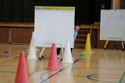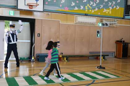 みんなで道路の安全な歩き方を確認した後は、実際にやってみました。