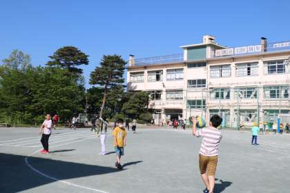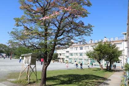 校庭のハナミズキが青空に映えています。今日は暑くなるそうです。朝遊びに校庭に出てきた子どもたちも、薄着の子が目立ちます。