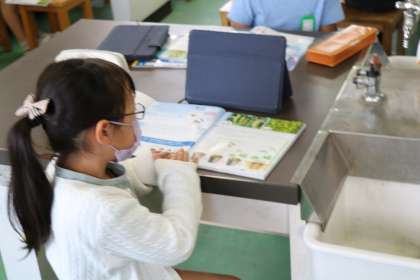 4年生の理科の授業の様子です。これから育てるヘチマについて学習していました。小さな種から大きなヘチマができることに驚きの声があがっていました。ヘチマをたわしとして使っていたことも知ることができたようです。