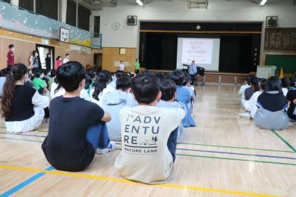 毎週金曜日朝は、集会・朝会があります。今日は、音楽朝会です。