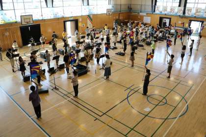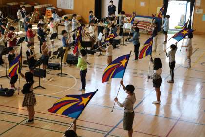 トロンボーンの音がとても冴えわたっていました。太鼓の子たちの姿勢が凛としてとても美しいです。学年全員が互いの音を聞きながらメジャーのリズムを黙視しながら心を一つにして演奏しようとする空気が伝わってきました。