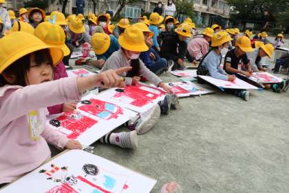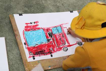 画用紙いっぱいに描いています。