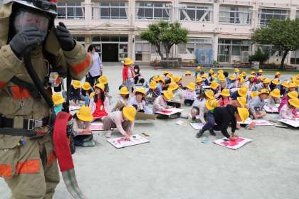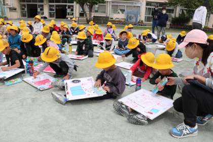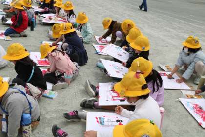暑すぎず、ちょうどよい天候の中、子どもたちは一生懸命消防自動車を見て、描いていました。