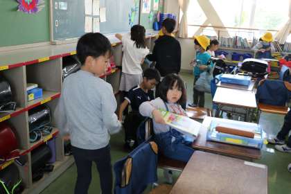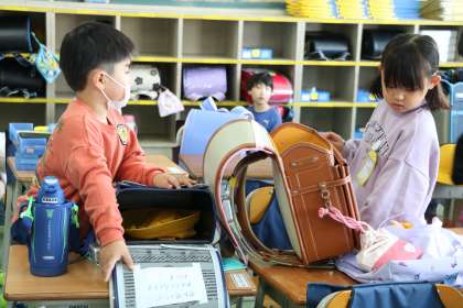 朝のしたくをしている様子です。1人でできることが増えてきました。