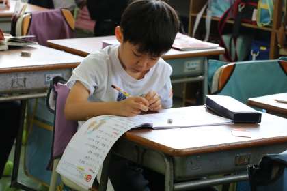 先生に花丸をもらって嬉しそうな顔、一生懸命ドリルに取り組む横顔、子どもたちの学ぶ姿から私も元気をもらえます。