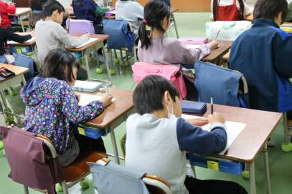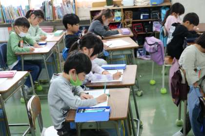 2年生の生活科の授業の様子です。学校探検で1年生に学校のことを紹介する準備をしていました。学校の地図で教室の場所を確認して、教室がどんなふうに使われるのか説明を書いていました。昨年教えてもらったことを思い出して、1年生にやさしく教えてあげられるといいですね。