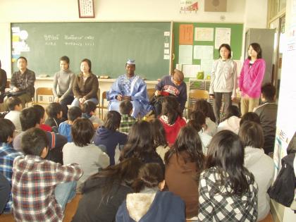 本日3、4校時に、国際交流学習が行われました。中国、韓国、インドネシア、タイ、ジンバブエ、フィリピンの6カ国から留学生をお招きしました。事前に、民族衣装やその国を紹介するビデオ、歌などを用意していただき、楽しみながら交流を深めることができました。
