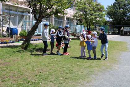 何をして遊ぼうかいろいろ考えて、ジャンケン列車に決まりました。