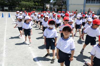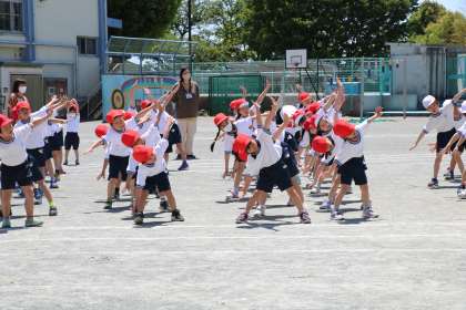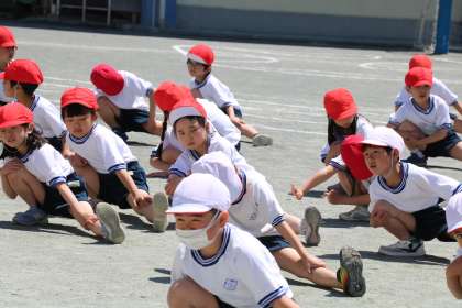 1年生学年体育の様子です。まずはしっかり準備運動をします。