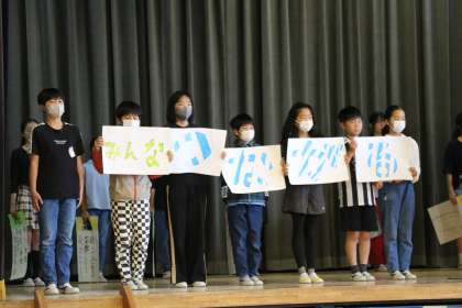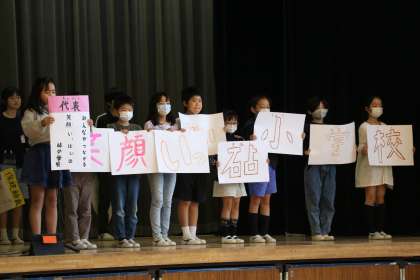 最後に代表委員会の紹介がありました。7つの委員会は5・6年生で活動していますが、代表委員だけ4年生から委員がいます。砧小学校委員会活動のスローガンを発表しました。そしてさっそく、運動会のスローガンを決めるので、これは!と思うキーワードを各クラスで話し合って提出してほしいとお願いがありました。