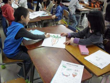 子どもたちは学校の畑で収穫した大根を家庭で料理してもらい、